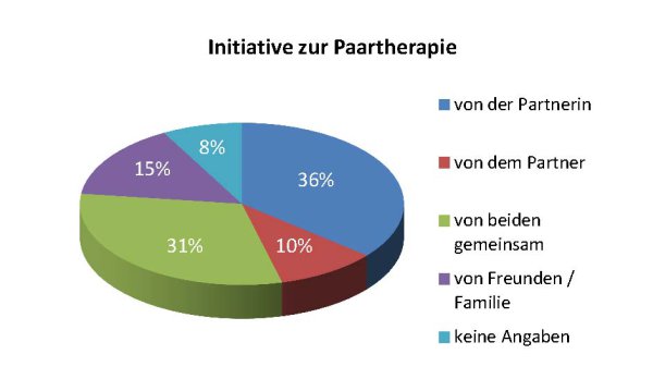 Die Anregung zur Paartherapie geht statistisch gesehen ungleich häufiger von der Frau aus und nur in knapp 10% der Fälle vom Mann.
